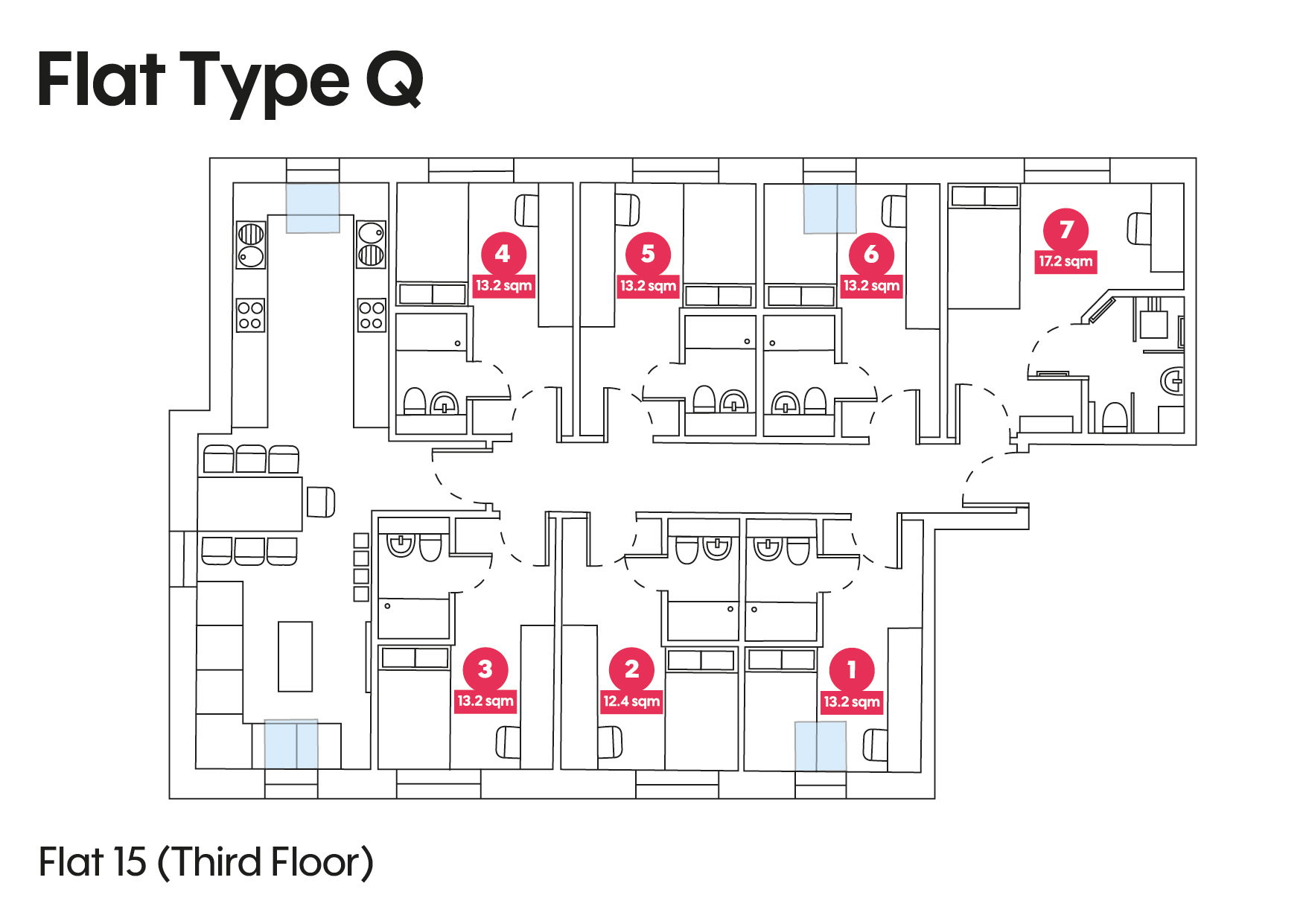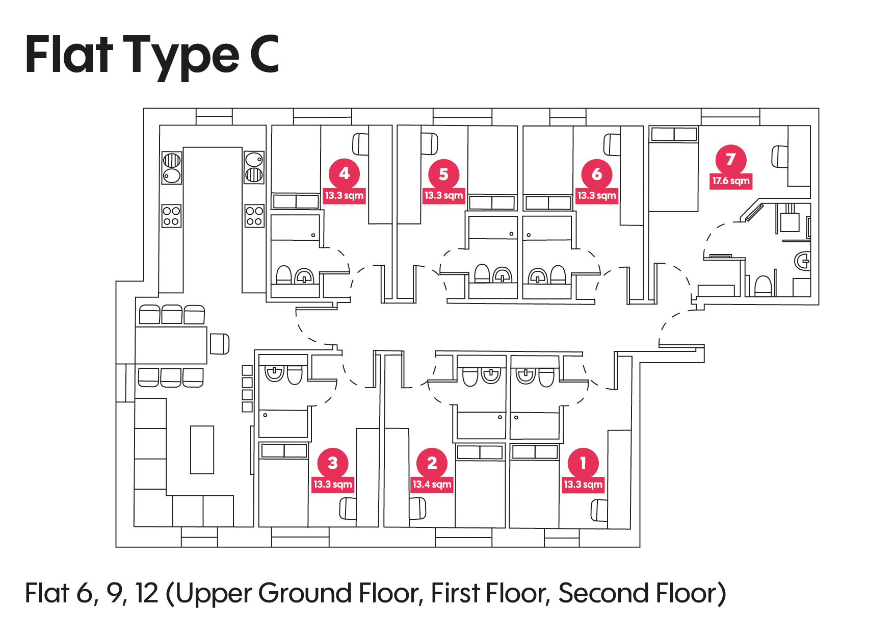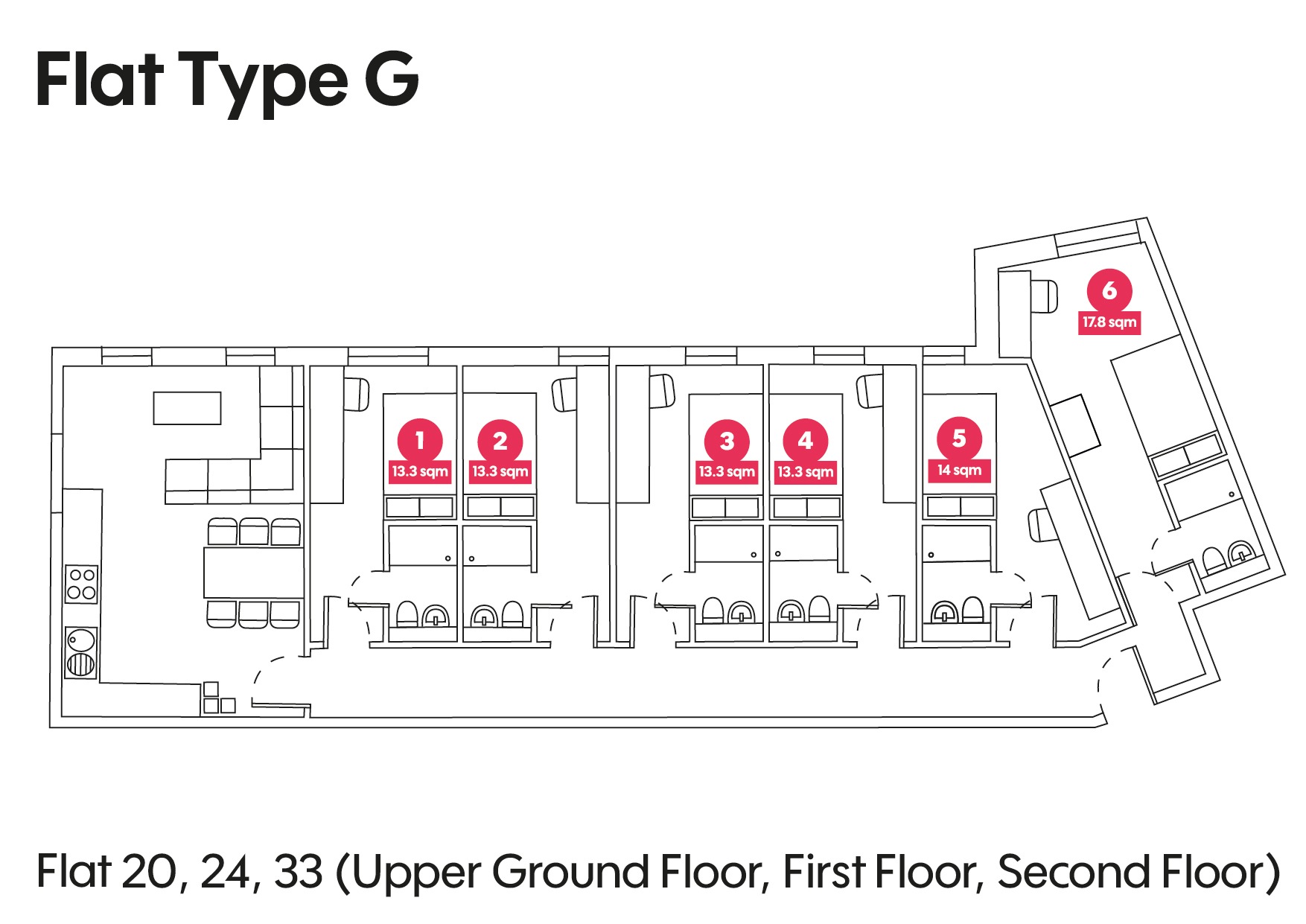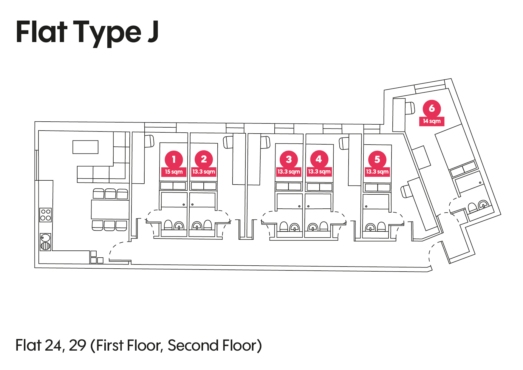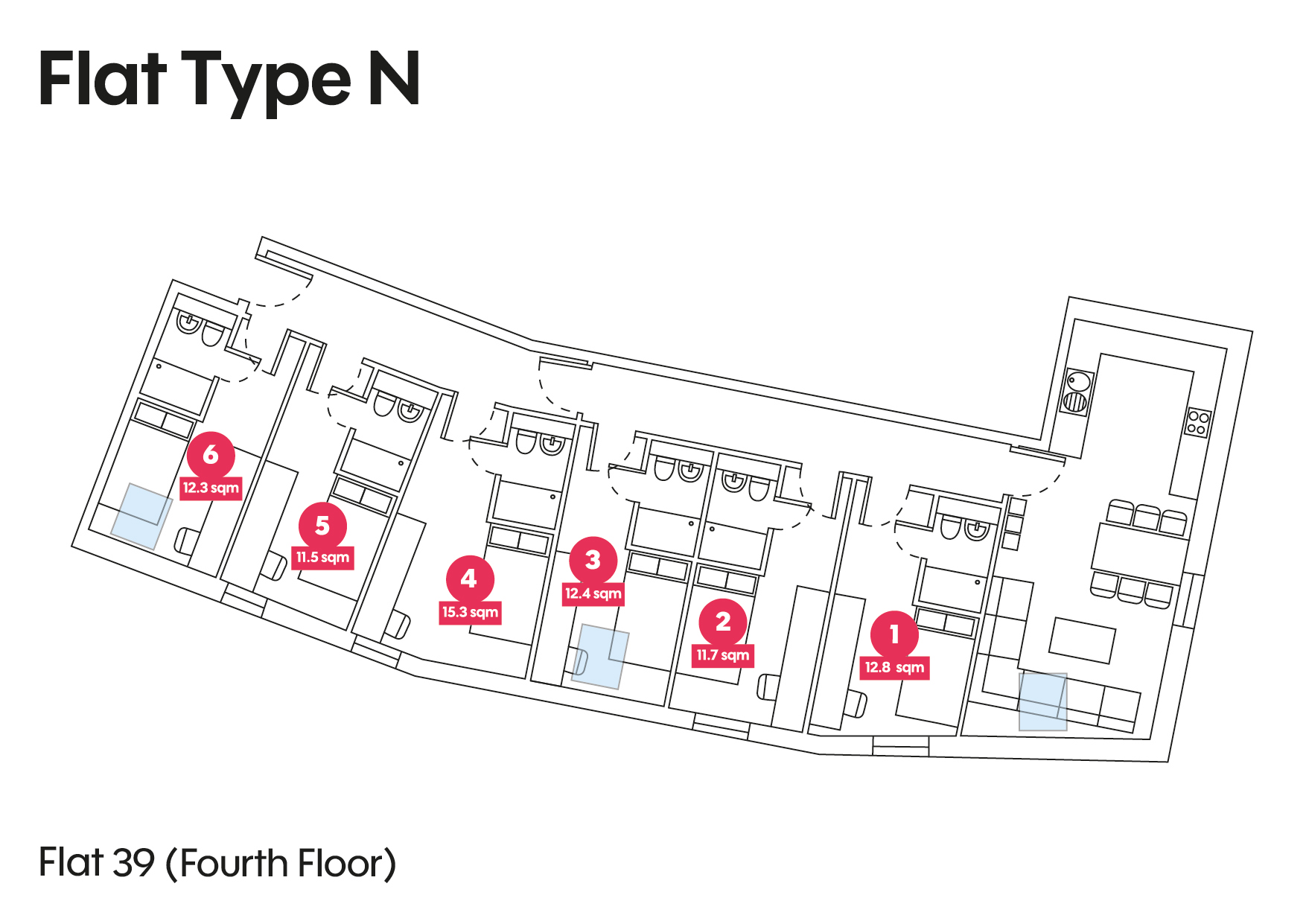 To see a floorplan of an Individual flat click an arrow next to the description.